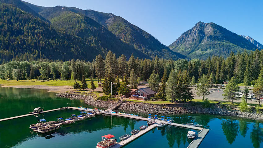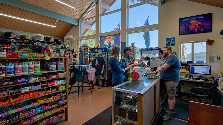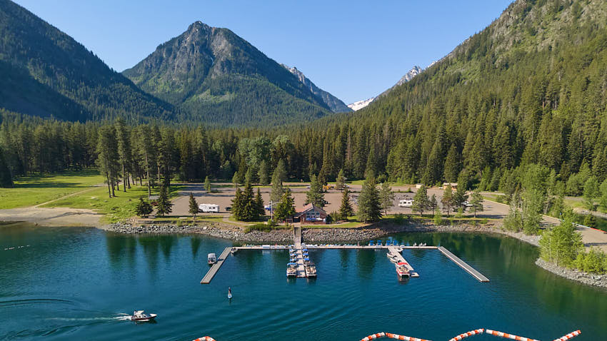 We are located at the south end of the lake within the state park.